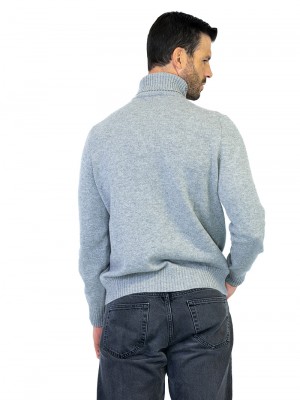 ManTurtleneck sweater made entirely of pure cashmere. Heavy stockinette knit with high collar to be turned to ribbed. Slim tight fit. Suitable for a sporty, casual look for cold winter days.