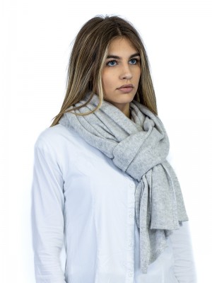 Maxi stole entirely made of cashmere with evanescent processing and tubular board; perfect to match over clothing or outerwear.Suitable for all seasons.