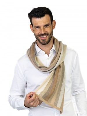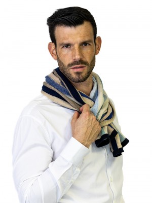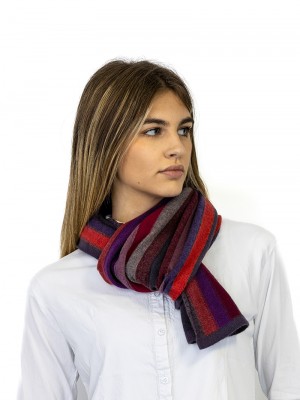 Scarf made entirely of soft, pure cashmere with evanescent striped workmanship. Unisex model, ideal for brightening and cheering up any look, both the sportiest and the most elegant ones.