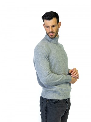 ManTurtleneck sweater made entirely of pure cashmere. Heavy stockinette knit with high collar to be turned to ribbed. Slim tight fit. Suitable for a sporty, casual look for cold winter days.