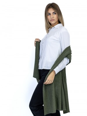 Maxi stole entirely made of cashmere with evanescent processing and tubular board; perfect to match over clothing or outerwear.Suitable for all seasons.