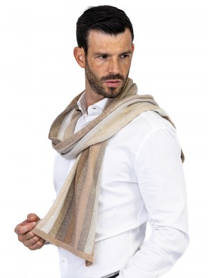 Scarf made entirely of soft, pure cashmere with evanescent striped workmanship. Unisex model, ideal for brightening and cheering up any look, both the sportiest and the most elegant ones.