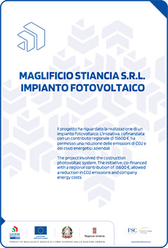 L'azienda ha recentemente realizzato un impanto fotovoltaico che permette la riduzione delle emissioni di CO2 e dei costi energetici aziendali. Il progetto è stato cofinanziato attraverso i fondi europei messi a disposizione dalla Regione Umbria.